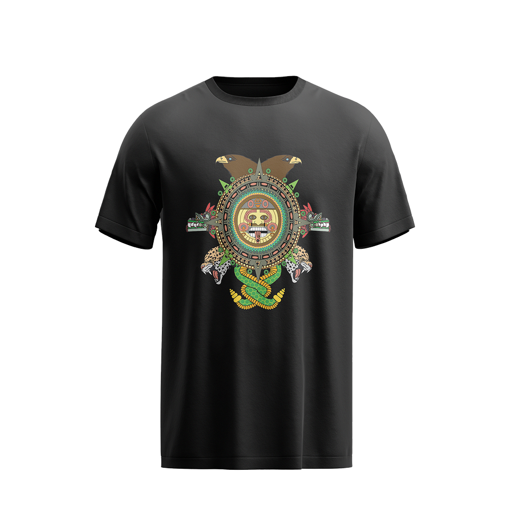 Product Description: Channel your ancestors’ fire. This black heavyweight tee wears Mesoamerican wisdom like armor, eagles soaring,...