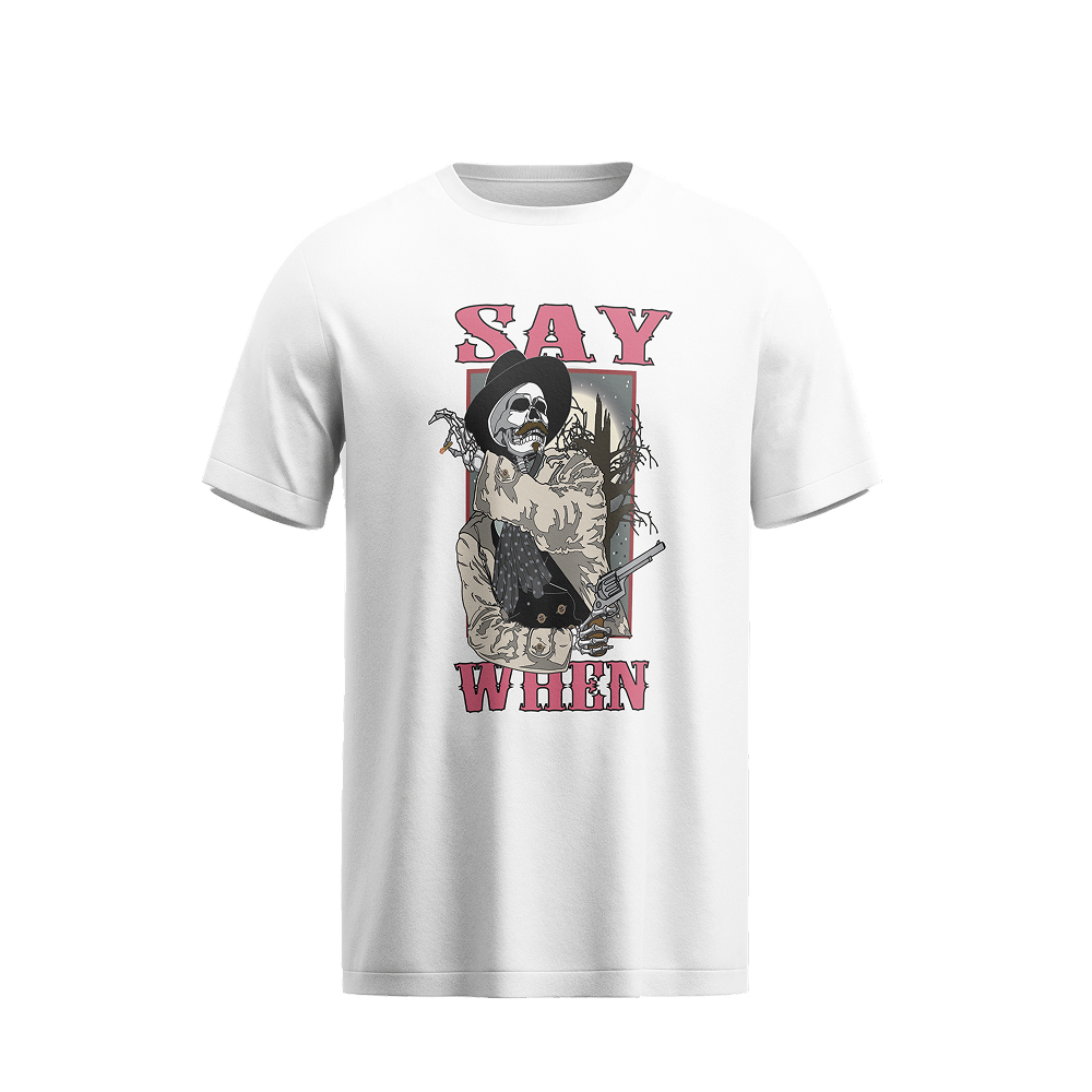 Product Description: Channel the fearless spirit of the Wild West. This white tee wears confidence like armor,...